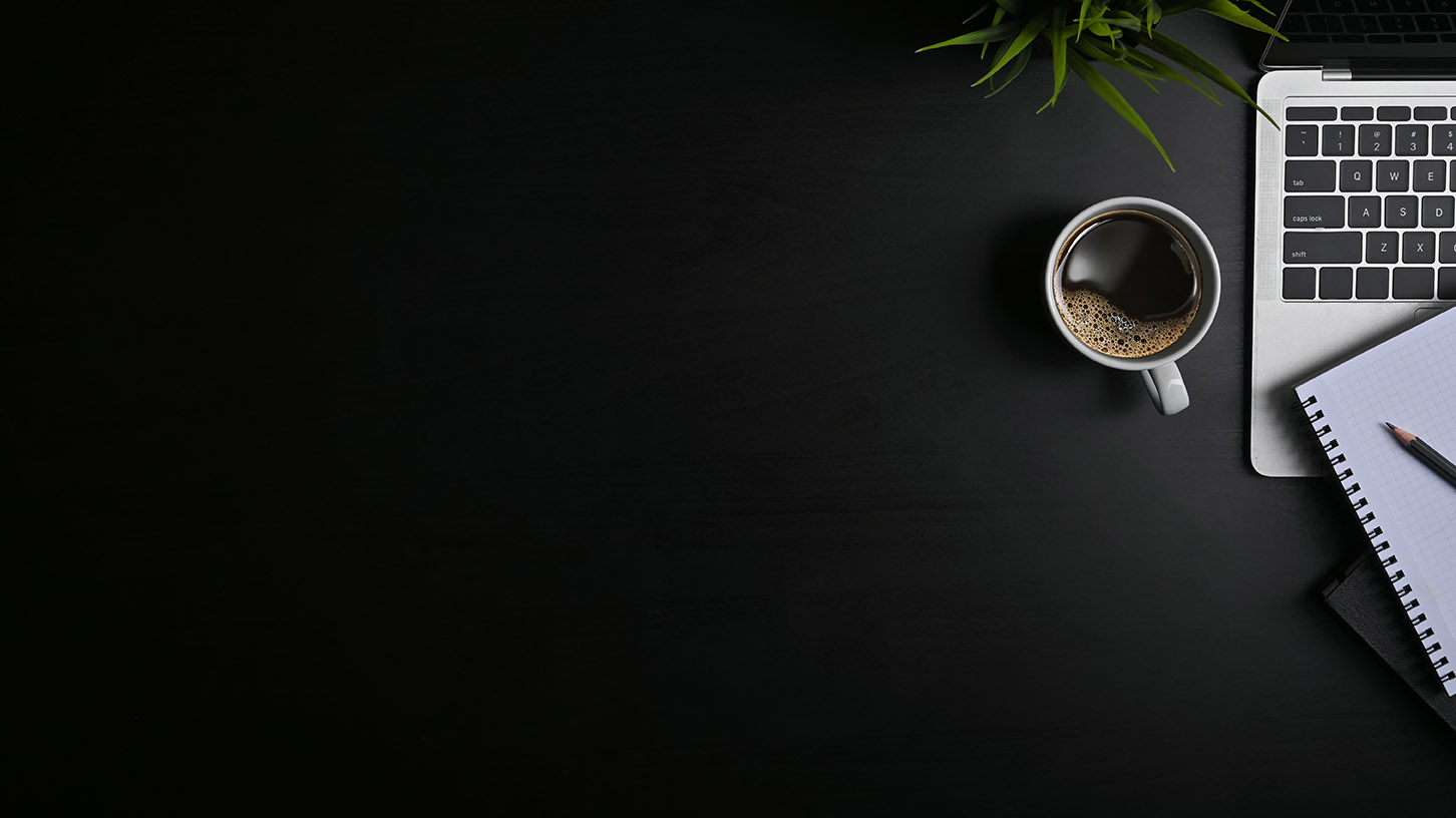 Copy space office black table with laptop, notebook, pencil and